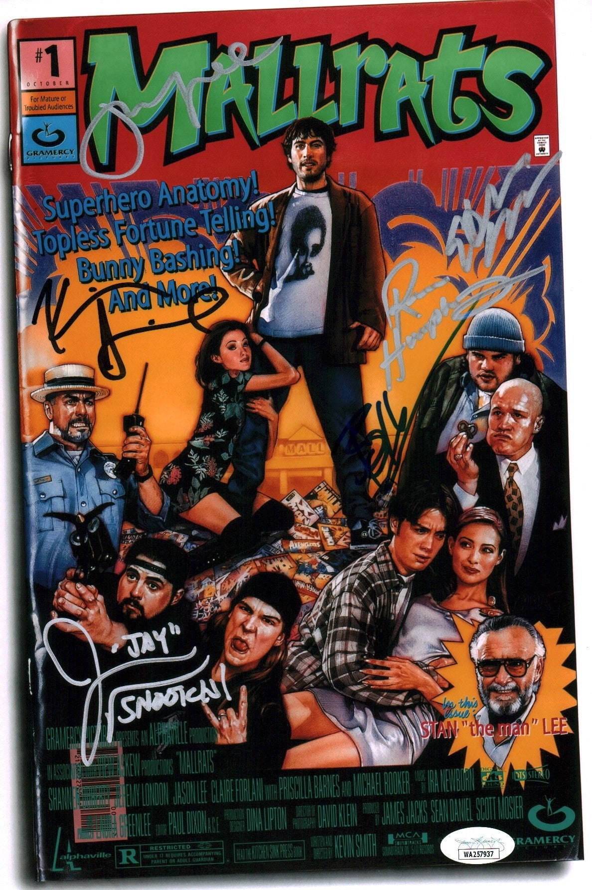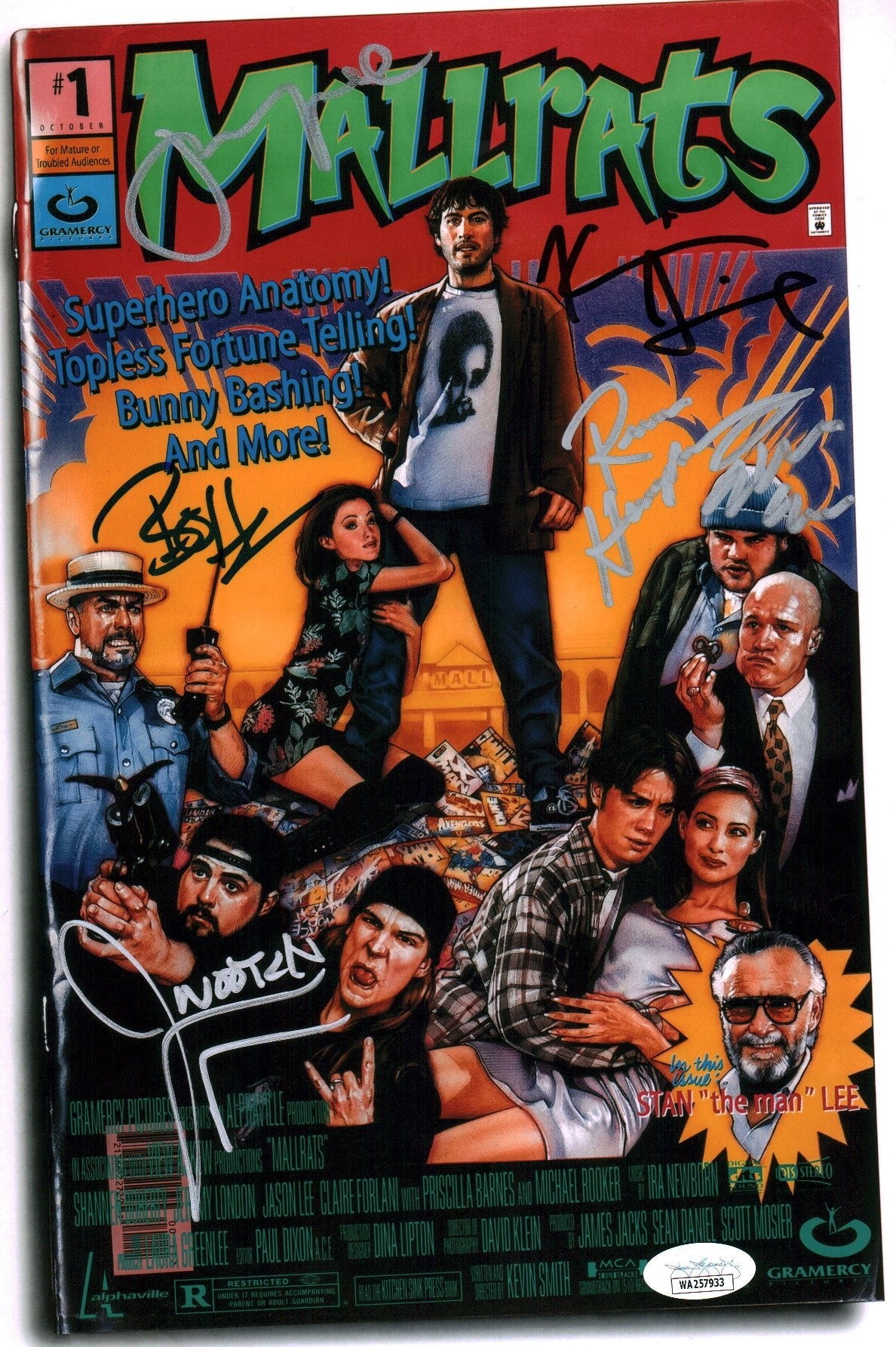 Mallrats 8x12 Signed Photo Cast x6 Lee, Mewes, O'Halloran, Smith, Humphries, Suplee JSA Certified Autograph